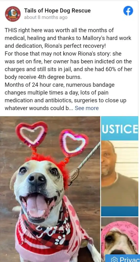 A Facebook post claims Riona’s story helped get Tennessee’s new anti-animal cruelty law passed.