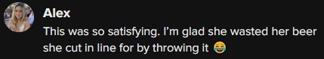 One commenter said: “That was really satisfying.” I was relieved she threw away the beer she was waiting in line for.