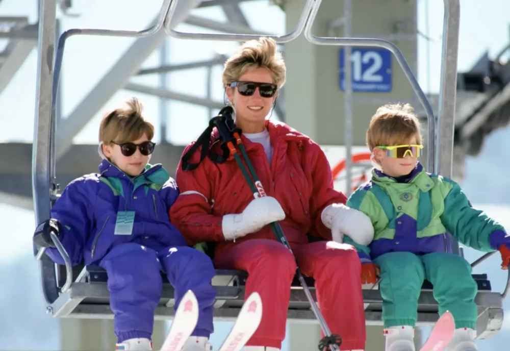 Princess Diana and her two sons, William and Harry, hit the slopes in Austria in 1994.