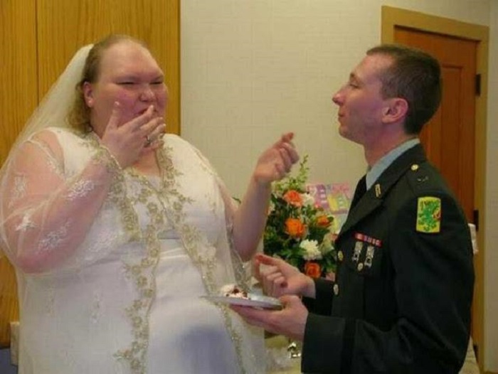 Many of the guests found the bride’s look somewhat humorous, as she was considerably larger and taller than her husband. After that, internet trolls were quick to make fun of the newlyweds.