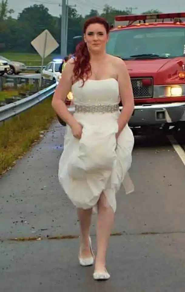 Sarah rushed out of the church, determined to save her family, and decided to go to the scene of the accident in casual flat shoes. Her commitment to her loved ones and her background as a nurse drove her to act immediately.