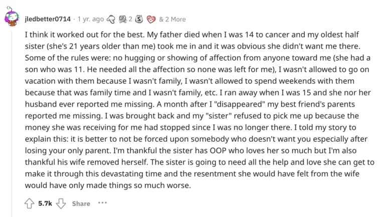 Ultimately, this heart-wrenching saga served as a poignant reminder of the complexities life can throw our way, and the choices we make in the face of adversity can have far-reaching consequences for our relationships and the people we value. OP’s unwavering devotion to her sister underscored the deep bonds of family and the lengths we are willing to go to protect and care for our loved ones, even at significant personal sacrifice.