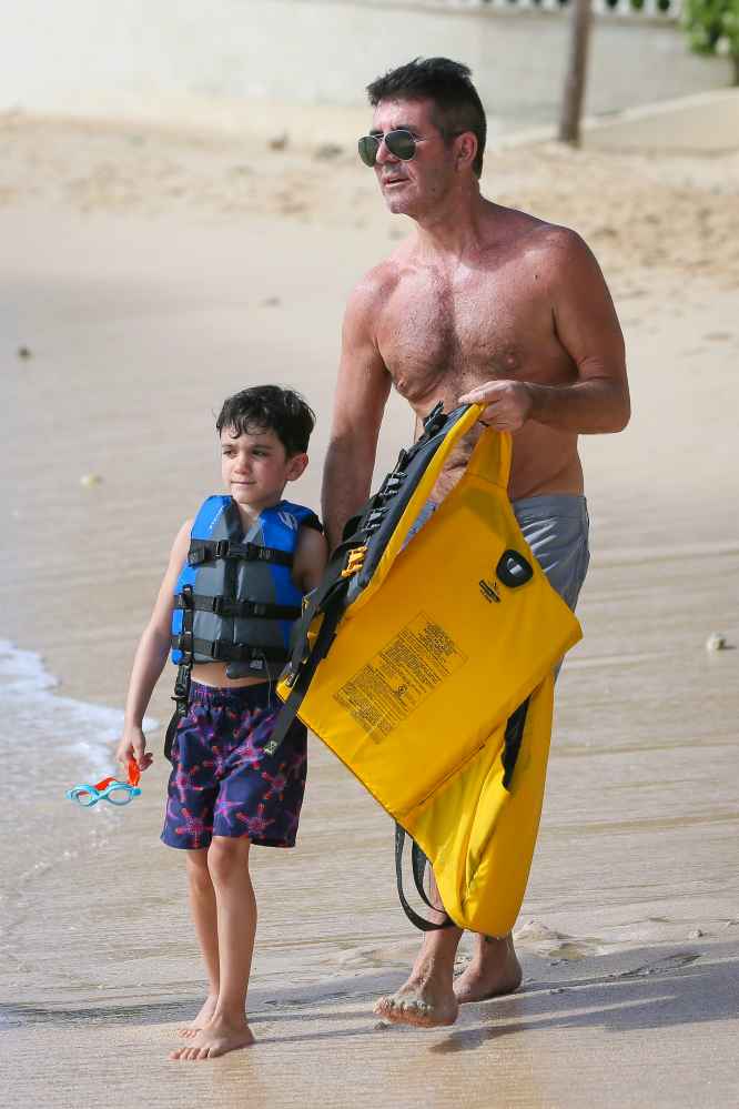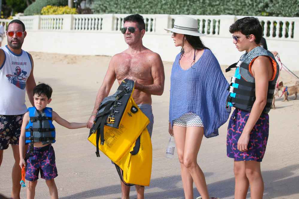 Simon Cowell was photographed on the beach with Lauren Silverman, their children Adam and Eric, and friends on December 22, 2019, in Bridgetown, Barbados.