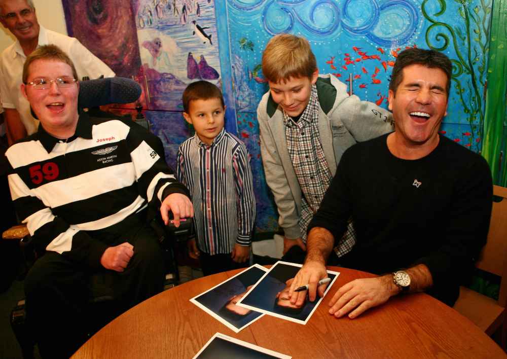 As the new Patron of national charity Children’s Hospices UK, Simon Cowell visits Christopher’s Children’s Hospice in Guildford, Surrey, signing autographs for Joseph, 16, Alex and Mathew Ball, 11, among others.
