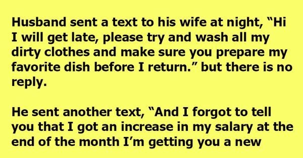 Late one evening, a spouse messaged to his significant other, mentioning her to wash his messy garments and set up his number one dish before he got back. Shockingly, there was no answer. Undeterred, he sent another message, illuminating his significant other about an expansion in his compensation and his arrangements to get her another vehicle. The stunned spouse answered with, “OMG, truly?” To which the husband shrewdly answered, “No, I simply needed to ensure you received my most memorable message.” The husband’s speedy reasoning added a perky curve to their discussion.
