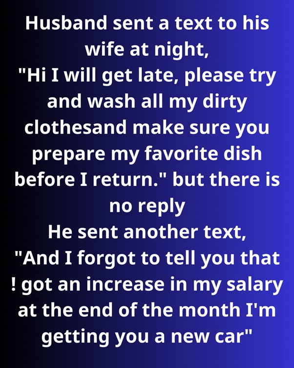 Sometime later, a spouse messaged his significant other, requesting that she wash his grimy garments and set up his #1 dish before he got back.
