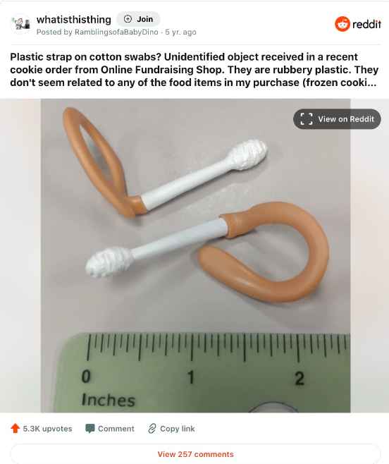 An online customer was confused when he received two mysterious items with his cookie order. The customer called the company to clarify, but they didn’t hear back, so he turned to the Internet for information. The internet community managed to identify the mysterious object as a gag that was supposed to resemble a Q-tip sticking out of the ear. The incident highlights how important it is for online platforms to solve puzzles and offer clarification when there is no direct interaction with sellers.