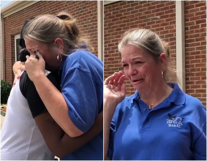 When Adeleye brought the teacher out to see her car for the first time, the woman immediately became upset. “Are you serious?” she said. “Are you serious? For God’s sake!” As Adeleye handed the keys to the teacher, the woman continued to cry. “No more sitting in the cold, no more riding the bus, no more waiting for someone to pick me up!” she cried as she hugged Adeleye and her husband and showed her appreciation.