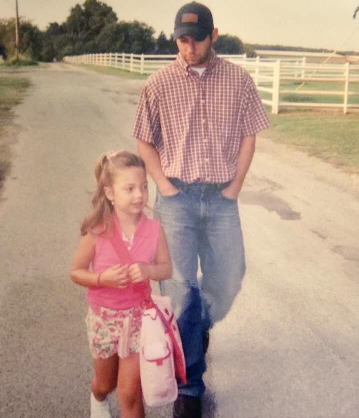 While going through some old photo albums, Jason Gayler of Alvord, Texas, came across a picture of him walking his 5-year-old daughter, Brittany, to her very first day of school as he walked her down the road. It was undoubtedly an unforgettable time for him.