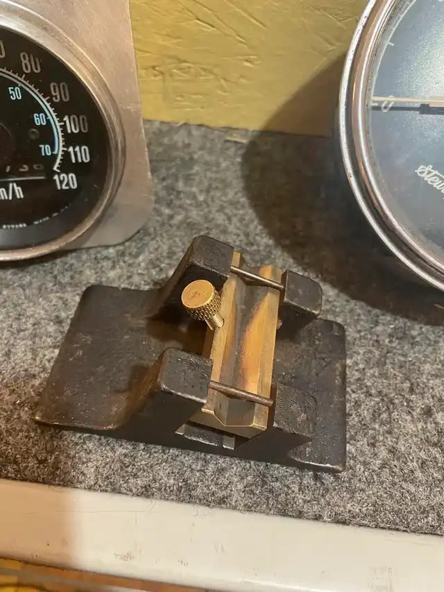 What is this little metal thing that fits in my hand? The gold-colored part moves up and down, but the adjustment screw allows it to be fixed. The seller, who was discovered in a consignment shop, is unsure of his identity after other people tried to identify him.