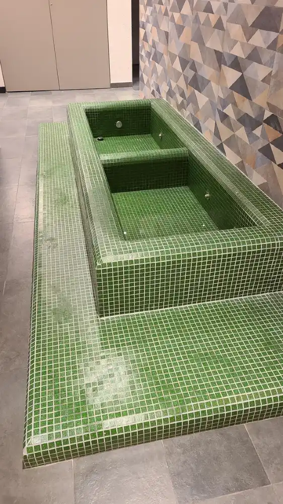 Is there a double-sided shallow bath in this luxury hotel? When the button is pressed, one side will light up with hot water and a red light for about 30 seconds. After the same time, the opposite side turns off and lights up with blue light and cold water.