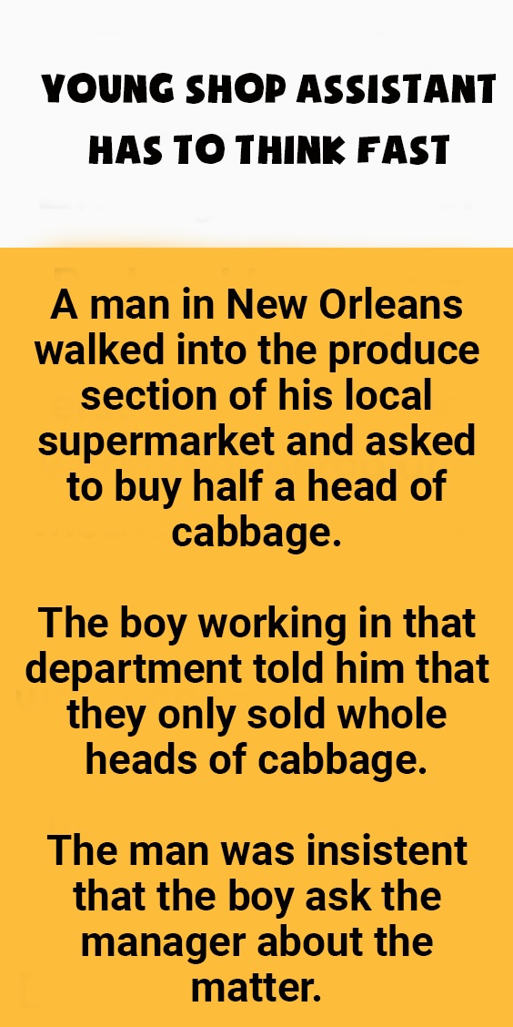A man in New Orleans strolled into the produce part of his neighborhood store and requested to purchase a portion of a head of cabbage.