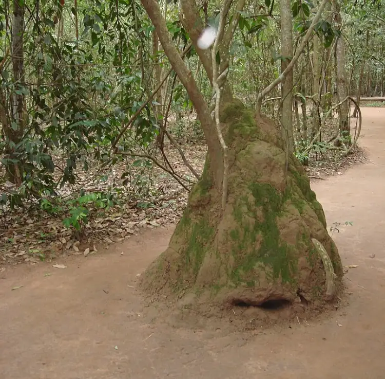 The difficulty of breathing underground was one of the most difficult parts of tunnel life. The vents in the tunnels were artfully hidden, as was the one below that looked like a termite mound.