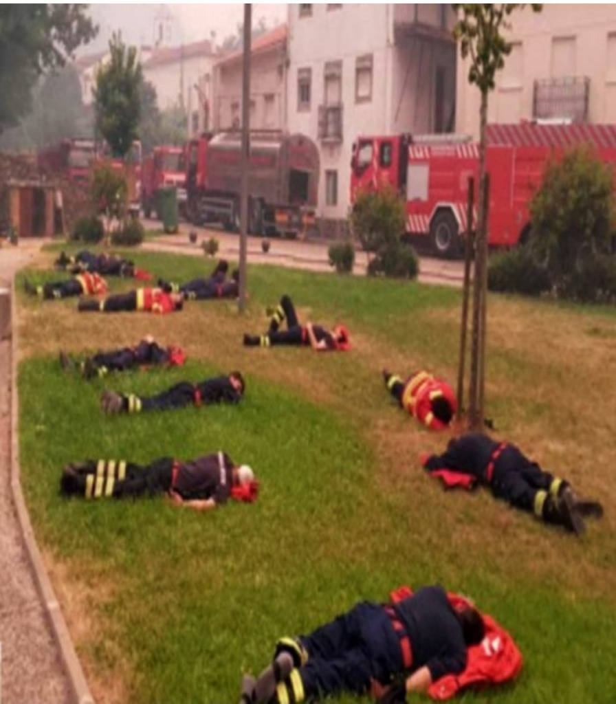 Pedro posted a picture of some firefighters trying to rest for a while after spending many hours trying to put out a large fire in Pedrog Grande.