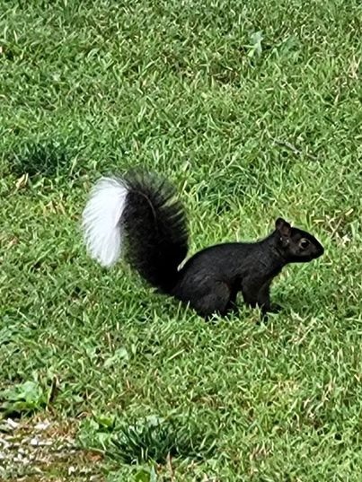 Goodness, what a striking animal! It could not really be a squirrel-skunk cross breed yet an interesting creature to run over ❤️