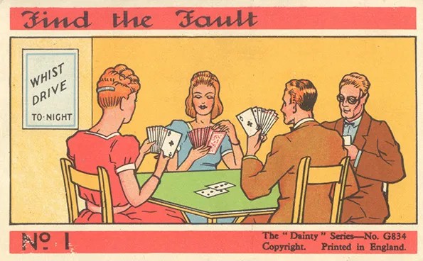 Take a close look at the image. Two men and two women are seated at a table playing cards in the artwork. Every little thing counts. So, did you succeed in identifying the image’s logical flaw?