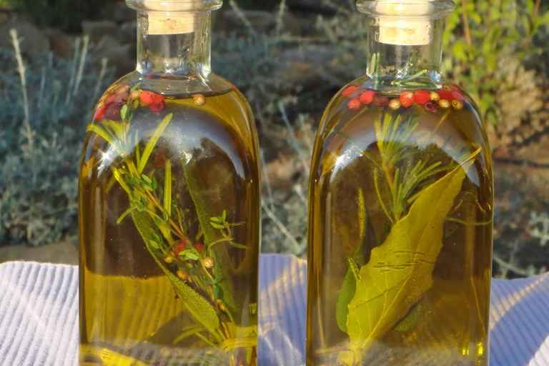 Put the olive oil, bay leaves, and crushed rosemary in a jar and close it tightly.