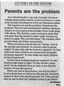 While others questioned why American students seemed to lag behind those in other countries, a retired teacher wrote a letter and sent it to a local newspaper, which published her opinion in black and white. The teacher’s statements, brutally honest as Lisa described what she believed to be the main reason students were failing, left little room for misinterpretation.