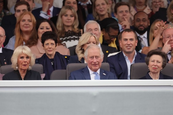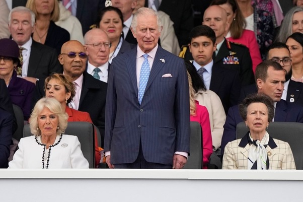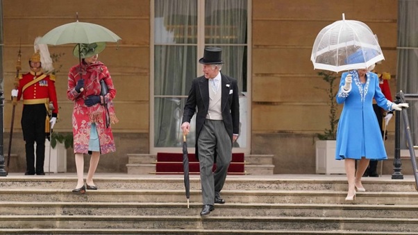 Princess Anne, Lord Charles III, and Sovereign Camilla showing up at an Imperial Nursery Party at Buckingham Castle on May 11, 2022, in London, Britain. | Source: Getty Pictures