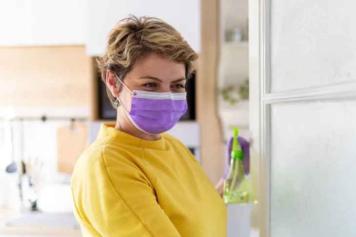 Whether the mold is active or not, Wojenski says it’s still a good idea to ventilate the area and wear a mask. Once you spot mold, open a window or turn on a fan to keep fresh air circulating during and after cleaning.
