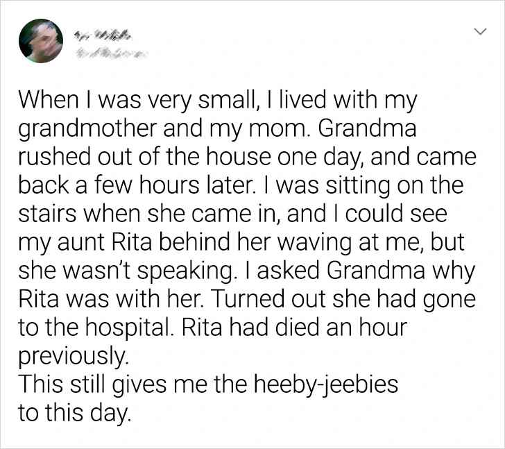 The individuals in this post shed light on the scariest anecdotes their loved ones have told, and reading them will give you the creeps, just as these Redditors above shared their scariest experiences.