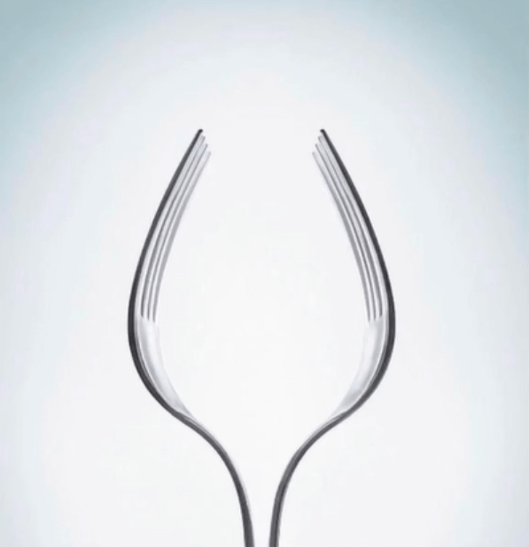 What did you notice when you first looked? If you missed something, don’t worry. Let me elaborate. To create the illusion of a wine glass, two forks and a wine glass were cleverly arranged.