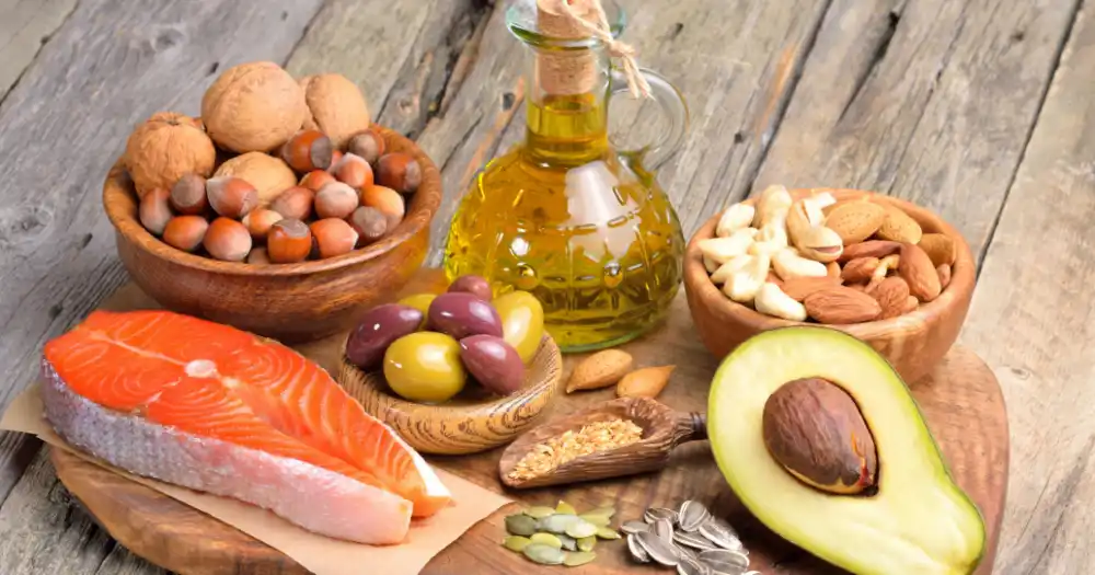Omega-3 fats: eggs, walnuts, avocado, almonds and salmon.