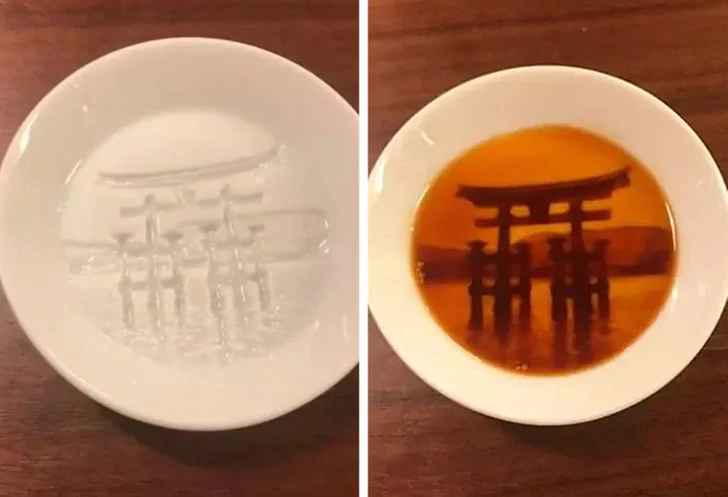 “Itsukushima Shinto shrine appears on the dish when the sauce is poured over it.”