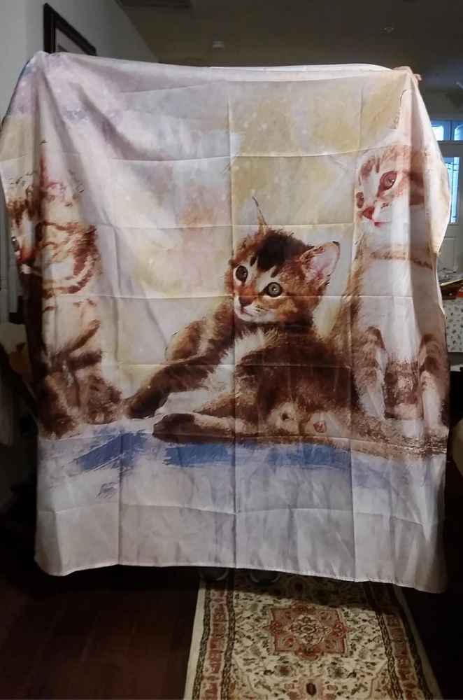 When this shower curtain arrived, my mother-in-law realized how noticeable the kitten’s butt was even though she bought it. It makes me laugh every time I watch it.”