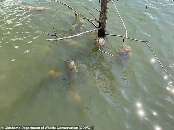 Untamed life specialists are cautioning occupants about ‘outsider egg pods’ found in an Oklahoma lake, asserting the animals will show up in enormous numbers this mid year.