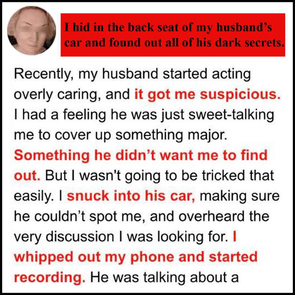 I learned all of my husband’s dark secrets by hiding in the back seat of his car.
