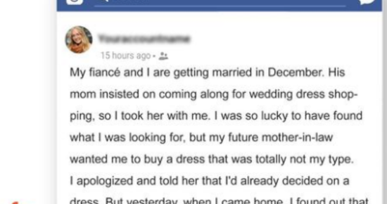A pivotal moment came when the woman’s future mother-in-law insisted on going wedding dress shopping with her mother and friends. On this important shopping trip, the woman discovered a dress that she really liked. However, her future mother-in-law had a different idea in mind. Her choice of dress and her declaration that it was the one she had always envisioned as her son’s bride caused consternation among the woman’s relatives and friends.