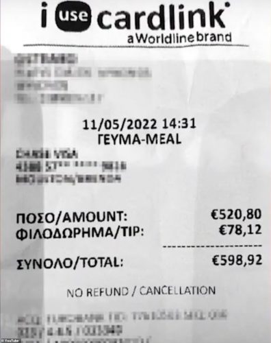 “Two mojitos and two crab legs cannot equal 600 euros,” I informed them. I won’t pay you. “I’ll call the cops,” he said flatly. They’ll detain you here and you won’t be able to go back to your own country. “We’ll find out easily where you live,” Moulton told Greek local news channel THEMA. event on May 11, 2022.