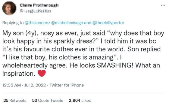He has had an amazing response from everyone at school and I am very proud of him for being true to himself.