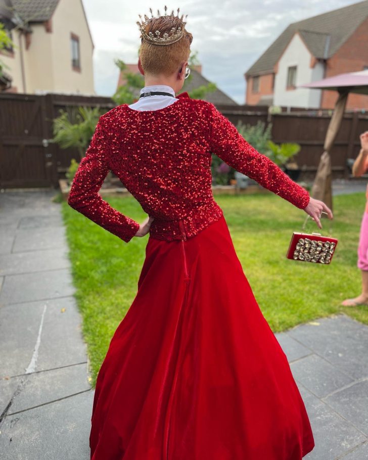 The dress was made by Kirk Willis, Korben’s friend. It was inspired by Billy Porter’s famous Met Gala tuxedo dress worn on the red carpet for the 2019 Academy Awards. Speaking to the Norwich Evening News, Korben said that “Kirk brought my vision to life – it was exactly what I wanted.”
