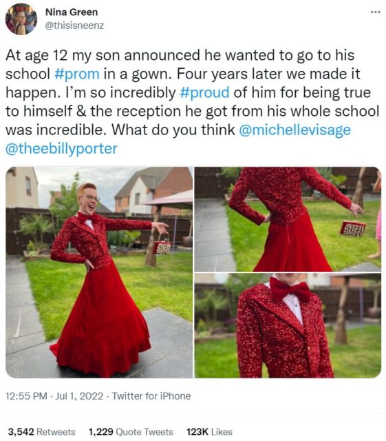 My son, who was 12 at the time, freaked me out when he told me he wanted to wear a dress to the school prom. After four years of trying, we finally made it,” the mother wrote.