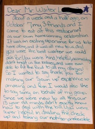 People don’t always go the extra mile to make things right, but when they do it can make all the difference in the world and this diligent waiter definitely deserved it!