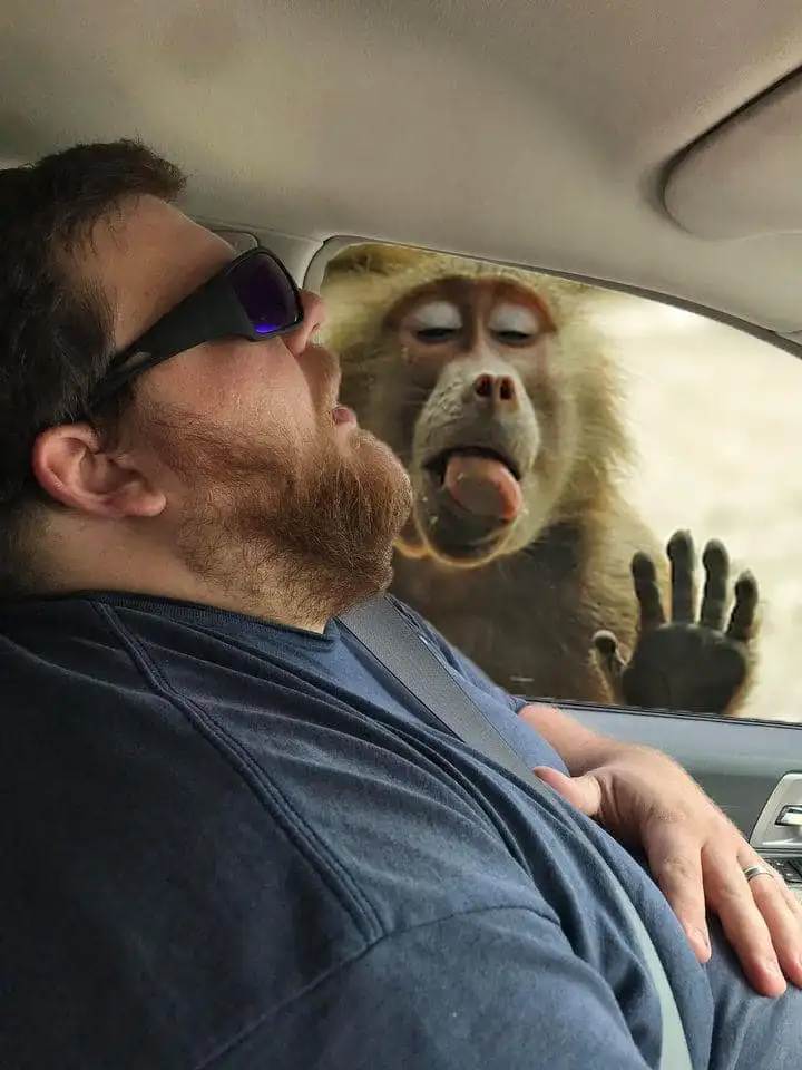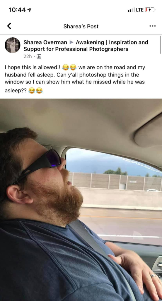 The Overman family’s road trip took an unexpected turn when Sharea decided to share a funny photo of her husband sleeping in the car with a Facebook photo group. What followed was a flood of creative and hilarious pictures from people all over the world, turning Nate’s nap into a whimsical adventure. As the images kept pouring in, the family found joy in the unexpected laughter and smiles they brought, turning a mundane moment into an unforgettable and heartwarming experience. Share expressed gratitude for the unexpected kindness of strangers and reminded us that sometimes it’s the simple things that can bring people together and brighten our days.