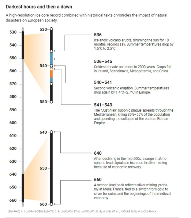 Presently, a ultraprecise examination of ice from a Swiss icy mass by a group drove by McCormick and glaciologist Paul Mayewski at the Environmental Change Foundation of The College of Maine (UM) in Orono has fingered a guilty party. At a studio at Harvard this week, the group revealed that a destructive volcanic ejection in Iceland regurgitated debris across the Northern Half of the globe right on time in 536. Two other gigantic emissions followed, in 540 and 547. The rehashed blows, trailed by plague, dove Europe into monetary stagnation that went on until 640, when one more sign in the ice — a spike in airborne lead — marks a resurgence of silver mining, as the group reports in Times long past