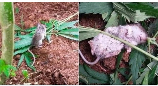 However a field of pot retaliated against a little gatecrasher. In New Brunswick, Canada, where marijuana is legitimate, a mouse was found among the plants. It was laying on its back, “stoned” and dropped.