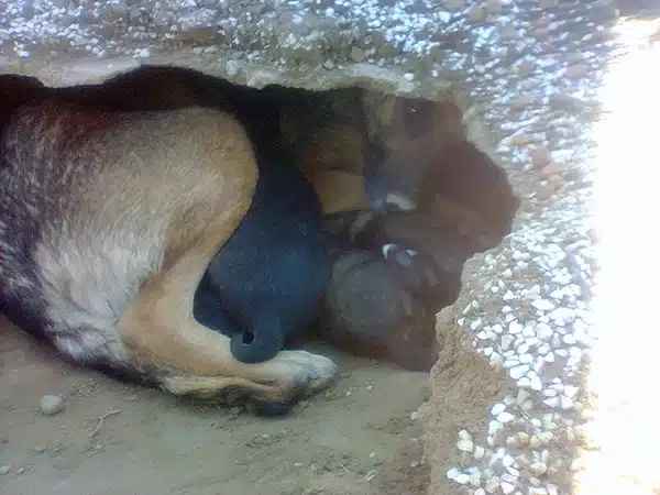 Together with their mother, the puppies were finally safe and could escape the cold graveyard.