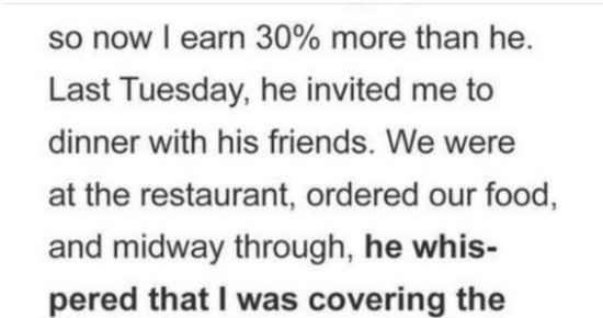 Before leaving, she stated that she would not pay this time because he had tricked her several times into paying for the food. “He often asked me in public to pay for his and his friend’s lunches to trick me. To be honest, I’m too polite to say no. I simply smile and pay because I hate conflict, especially in public settings, such as restaurants. Last Tuesday, he invited me to dinner with him and his friends. I immediately informed him that I would not cover the cost of their meal and that he should not count on it. “No worries,” he replied, adding that “it got”.