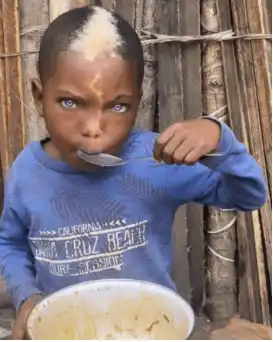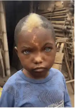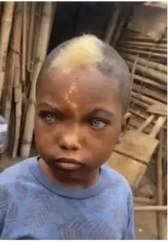 People are mesmerized by the beauty of a child despite the absence of knowing its age or name. The little black boy has eyes that are his natural color: a vivid, piercing blue.